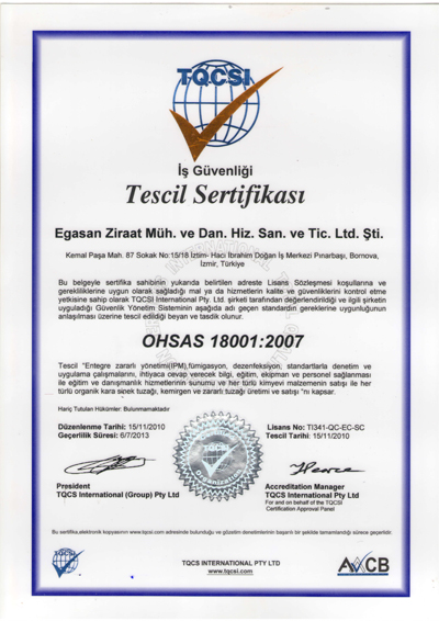 EGASAN ZİRAAT, sağlıklı, kaliteli ve huzurlu bir hayat için gerekli mekânların yaratılmasına katkıda bulunmaktadır. Bu amaçla; başta Kalite Yönetim Sitemleri ve Gıda Güvenliği Sistemlerini uygulayan; GIDA, TARIM ve HAYVANCILIK, TEKSTİL, KİMYA, AMBALAJ, ENTEGRE İŞLETMELER, TURİZM, OTELCİLİK, TAŞIMACILIK, BANKALAR, HASTANELER, SAĞLIK, RESTAURANTLAR, EĞLENCE ve Diğer Sektörlerde, her türlü Haşere ve Zararlılarla Mücadele Hizmetlerinde önemli başarılara imza atmıştır.