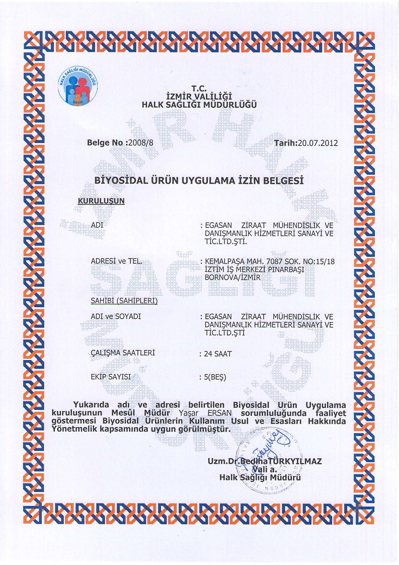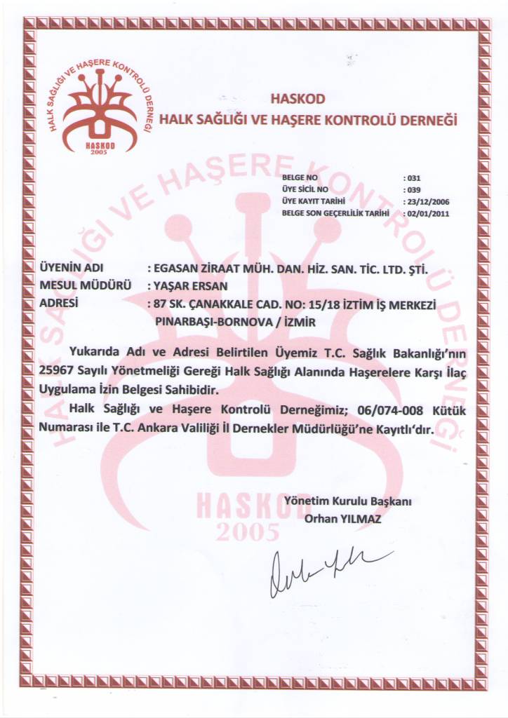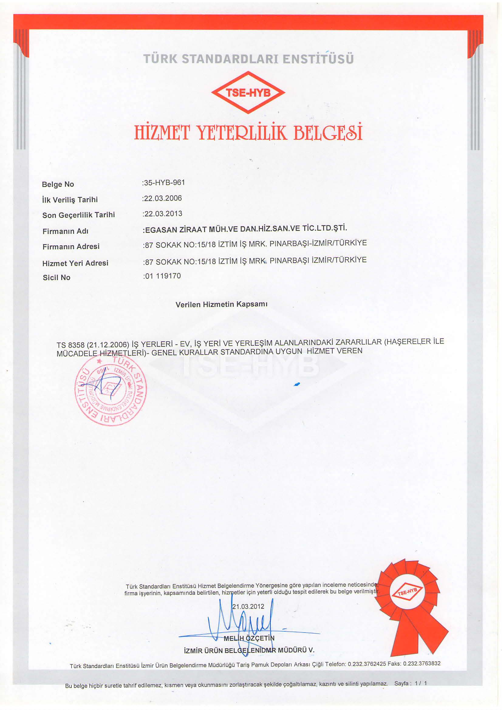 EGASAN ZİRAAT, İşletmelerinin ihtiyacı olan Hijyen Standartlarının sağlanması ve Çevre Sağlığı Hizmetleri kapsamında İstenmeyen Zararlılarla Mücadele Hizmetlerini (Haşere - Zararlı Mücadelesi); Eğitim, Denetim, Danışmanlık ve Ürün Tedariği gibi hizmet anlayışıyla Entegre bir şekilde yürüterek, gerçekleştirdiği hizmetler ile işletmelere katma değer sağlayan İLK FİRMA olmuştur.